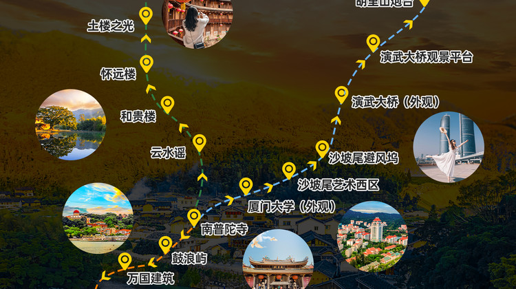 2. 厦大白城-胡里山炮台-曾厝垵-椰风寨-会展中心-观音山海滩-五缘湾;