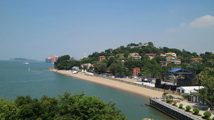 港仔后海滨浴场位于菽庄花园西面,两者毗连在一起。港仔后的海面又名金带水。站在沙滩上,面朝大海,背面就是日光岩,可以看到高处光秃秃的岩石,所以这里风景还是很美的。这里又是一个人群聚集区,很多人是来游玩菽庄花园的,正巧这里有个浴场,便下来用海水泡泡脚也不错。地址:田尾路27号