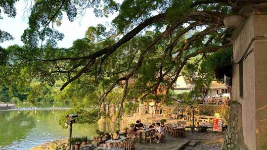 另外,云水谣景区是个适合散步的地方,这里有客家土楼、百年老榕树、还有鹅卵石铺成的古道。漫步在铺满鹅卵石的溪边,看流水潺潺、白鸭慢步、榕树垂柳,感受清新自然的田园风光,确实是一种享受。