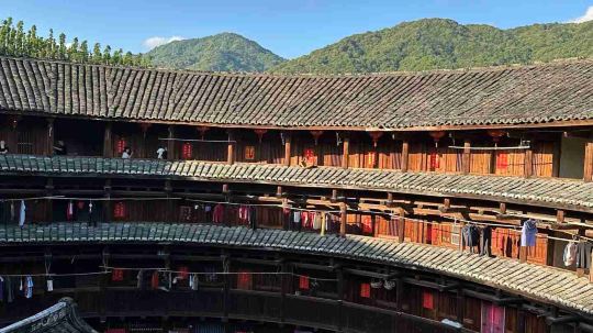 ❀ 南靖龙昌楼距今已有100多年的历史,整座圆楼按八卦图案和“天人合一、阴阳平衡”的理念进行布局设计,建筑内部空间围合,前低后高,高处建筑形成楼群靠山,从而达到聚气的效果。