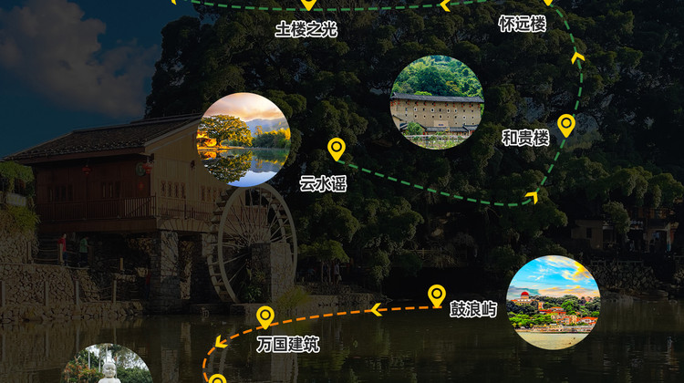 - :【世遗连游·美景相伴🌺】 🚩打卡南靖云水谣土楼,沼泽地上的神奇四方土楼“和贵楼”+精美双环原型土楼“怀远楼”+土楼之光-钟兴楼登楼观全景;漳州古城citywalk ⛴️世遗海上明珠—鼓浪屿,打卡热门影视取景地🎬&万国建筑博览; 🏡海上园林:菽庄花园-钢琴博物馆🎹历史与艺术交织;🏖️港仔后海滨浴场,自由海滨沙滩娱乐;
