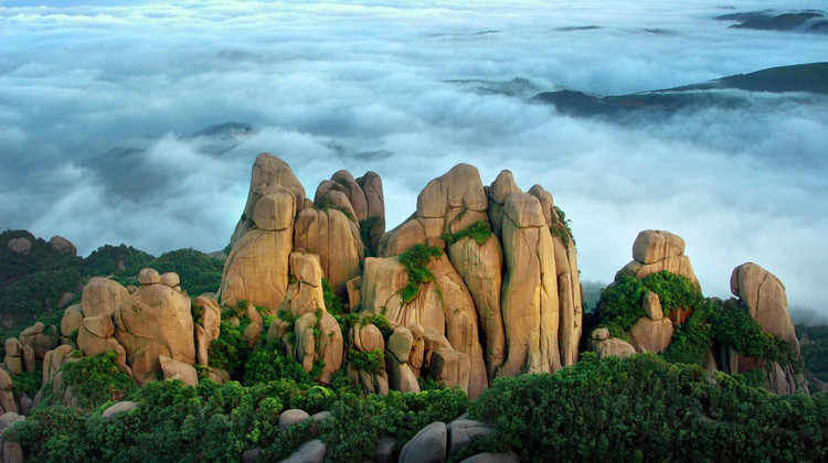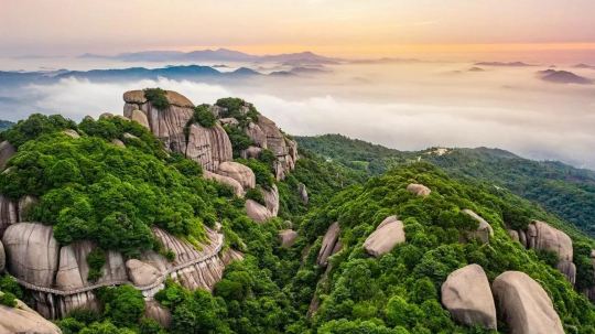 “云横断臂千层险”是太姥奇峰的真实写照,山上分布着九鲤朝天峰、十八罗汉峰等五十四峰,峰林高耸险峻,错落有致,构成了一幅绚丽多姿的地质画廊。 太姥奇石,无不惟妙惟肖,栩栩如生。夫妻峰、仙人锯板、金龟爬壁等360多个岩石鬼斧神工的景致,令人仿佛进入雕像艺术展览厅,难怪古人在此写下“太姥无俗石,个个似神工,随人意所识.万象在胸中”的感慨。