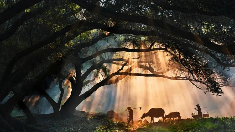 在这里像极了桃花源里面的隐世村落。千年大榕树下,村民牵着牛赶着鸭子挑着水, 仿佛不问世事,一个纤尘不染的“海国桃源”。早一点到的话,这里的雾气还没有散尽,不会太浓就薄薄的一层飘在树林中。当第一缕阳光穿透千年榕树下时,美的就像是一首诗。