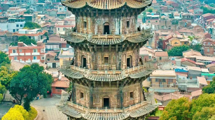 泉州开元寺石塔是我国古代石构建筑瑰宝。从石塔的建筑规模、形制和技艺等方面来看,都可以说得上精妙绝伦。它既是中世纪泉州海外交通鼎盛时期社会空前繁荣的象征,也是泉州历史文化名城特有的标志。