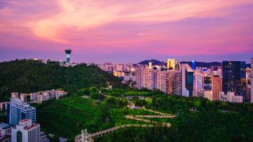 厦门山海健康步道全长约23公里,起于邮轮码头,止于观音山梦幻沙滩,沿线有金山、湖边水库、五缘湾等“八山三水”。该步道不受地面车辆交通影响,穿越城区高密度居住和商业区,将城市景观与自然风景衔接起来,形成一条山海步行通廊。