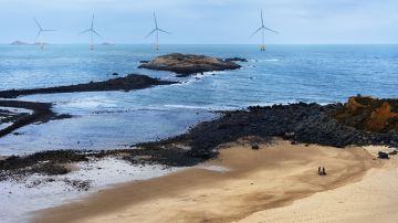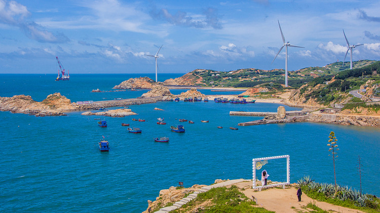 长江澳沙滩是平潭三大海滨沙滩之一,沙质细白。拥有福建较大规模的风力发电田,一座座风车排列得错落有致,碧海风车和蓝天白云,美不胜收。