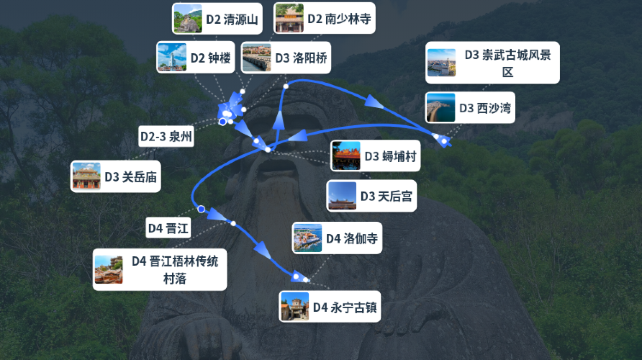 - :🤵下单前点击咨询客服🤵 自营专享领取多重优惠福利 🎵【古韵今朝|美食美景两不误】🎵 穿越时间与空间,打卡人文、历史、自然特色: 👣【经典线】 黑神话·悟空|西游记@拍摄地-泉州东西塔 🌈【超体验】 让一次旅程打卡三城风光的穿越之旅~ 💫【网红线】 蟳蜅簪花+梧林古厝+海上佛国洛伽寺~ 💐【忙里偷闲上香】 开元寺+关岳庙+妈祖天后宫的香火缭绕 ~
