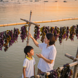 沿着栈道行走,可俯瞰滩涂上延绵的紫菜养殖场、渔排与渔船,晨曦与晚霞映照下的海面光影变幻,宛如人间画卷。栈道下方是纹理丰富的花岗岩礁石,船型观景平台更增趣味,吸引无数游客停留拍照留念。