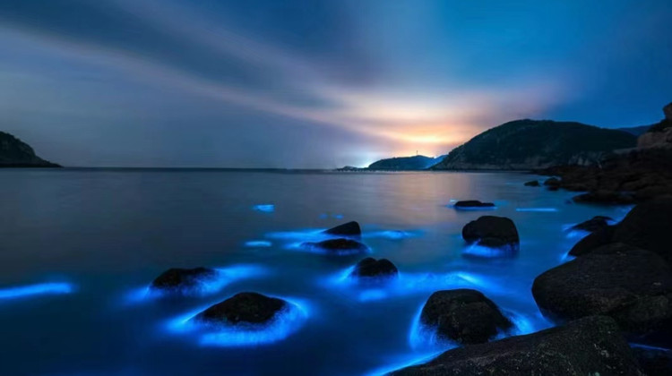 所谓“蓝眼泪”是一种生活在深海的介形虫,聚集在一起发出的蓝色光芒,如《阿凡达》生命树般闪烁。由于对水质要求较高,不常出现在近海和海滩。坛南湾、北港村、仙人井等地都有可能观察到“蓝眼泪”,一般在3~10月出现,6~7月为爆发期,绵长的海岸线犹如浩瀚银河,仿佛来自大海的精灵,美不胜收。