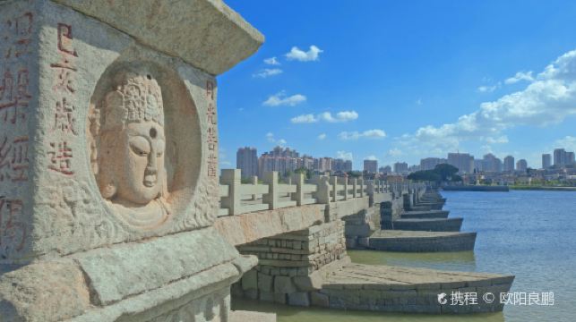 桥北,桥南存有4尊十一世纪修桥时所立的护桥石将军,7座石塔以及中亭的26方历代修桥碑记。它为船型的桥基设计,这样的设计既可减少水的冲力,又有比较好的审美效果。洛阳桥是中国现存较早的跨海梁式大石桥,也是世界桥梁筏形基础的开端。桥设计特别的地方是在“种蛎固基法”,是在桥下养殖大量牡蛎,巧妙的利用牡蛎外壳附着力强、繁殖速度快的特点,把桥基石和桥墩石胶合凝结成牢固的整体。这也是世界上笫一个把生物学知识运用于桥梁工程的创举。桥头还有始建于宋代的蔡襄祠,可以看到蔡襄的石像,是为了纪念蔡襄而建的。出名的蔡襄《洛阳桥记》宋碑,即立于祠内。碑上的文章简短精炼,用153个字记载了造桥的时间、年代、桥的长宽、花费的银两和参与的人物等,书法优美、刻工精致。蔡襄是宋代四大书法家之一,他的自撰自书此碑为洛阳桥增辉不少洛阳桥主要是以历史出名,倒不是因景点漂亮壮观而闻名。走一个来回耗时并不多,一路上各时期石碑述说着它的历史悠久。来这里看看船头形状的桥墩,欣赏下古代桥梁的建筑艺术。还可以在桥上透过石逢看底下的江水,在桥上感受江水的汹涌澎湃。另外值得一提的是,它是中国古代四大古桥中免费参观的桥。