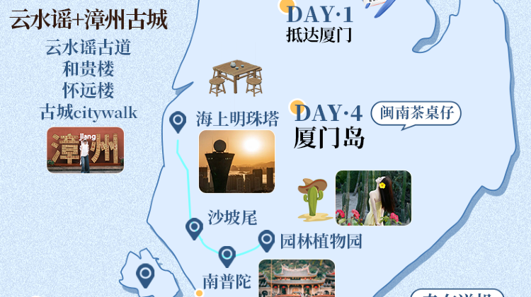 2. 厦大白城-胡里山炮台-曾厝垵-椰风寨-会展中心-观音山海滩-五缘湾;