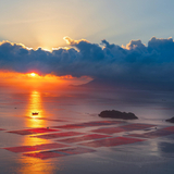 霞浦县松港街道北岐村海边风光如画,影友如织。北岐滩涂风光旖旎,成为22大摄影地之一,每年前来拍摄滩涂风光的国内外影友多达20多万人次。每当北岐紫菜生产的繁忙季节,滩涂上万根竹竿插成一块块方形的网框,由远及近,绵延数十里,蔚为大观。清晨六点左右,一轮火球从海面上喷薄而出,瞬间,大海像镀上了一层金色霞衣,上百米的山道上,摄影师们屏住了呼吸,“咔嚓、咔嚓”声响成一片,紫菜在丝网上挂着一条条色带,红的,黑的,紫的,宛如一幅没有经过修饰的水墨画,被收入一个个镜头,被曝光在一张张彩色胶片上。