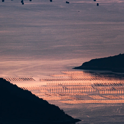 沿着栈道行走,可俯瞰滩涂上延绵的紫菜养殖场、渔排与渔船,晨曦与晚霞映照下的海面光影变幻,宛如人间画卷。栈道下方是纹理丰富的花岗岩礁石,船型观景平台更增趣味,吸引无数游客停留拍照留念。