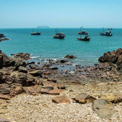 猴研岛位于平潭澳前镇东澳村,岛上立着一块写有“祖国大陆—台湾岛最近距离68海里”字样的石碑,与台湾新竹南寮渔港仅相距68海里,相当于126公里。整个猴研岛放眼所到之处皆为岩石,岛上怪石嶙峋,草木稀少,是平潭岛“光长石头不长草”的典型代表。游客可以在这里欣赏到错落分布的大石块、停泊于此的渔船、远处人家的寥寥炊烟,映衬着宽广宁静的海湾,体验其慑人魂魄的魅力。