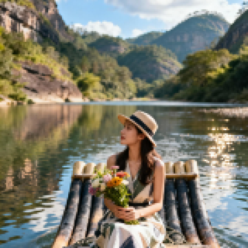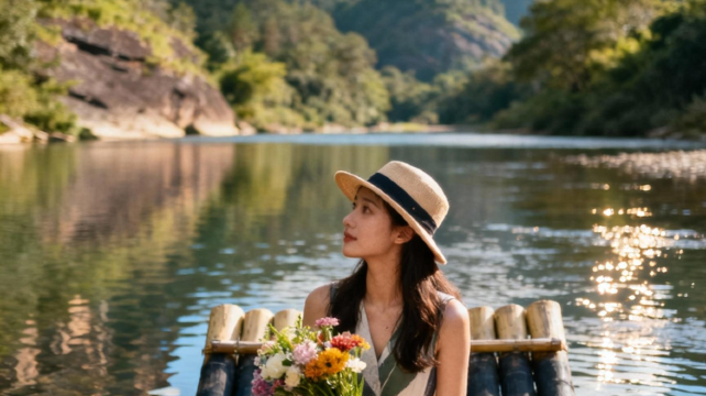 乘竹筏观山景听溪声