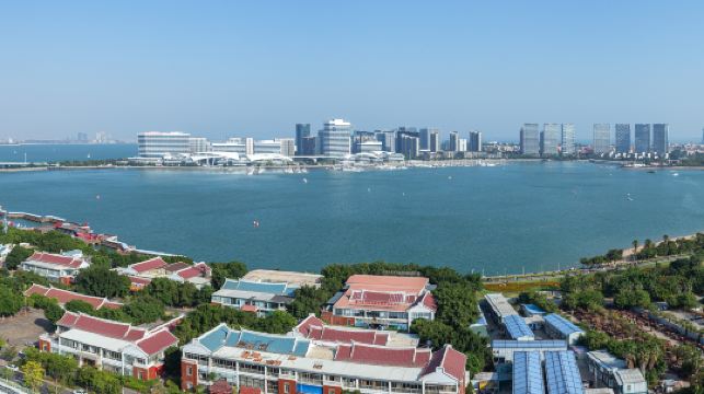 五缘湾沙滩面积辽阔,海天一色,景色优美。你可以在这里游泳、冲浪、散步、垂钓,还可以租一艘船在海浪中摇曳,是您休闲放松的好地方。